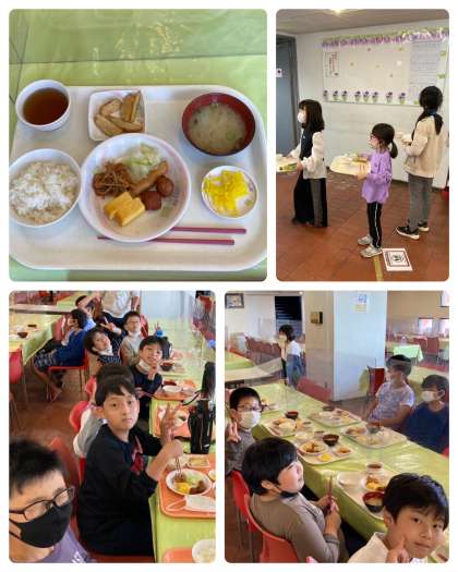 朝食は、卵焼き、ソーセージ、ミートボール、きんぴらごぼう、フライドポテト、ごはん、みそ汁です。