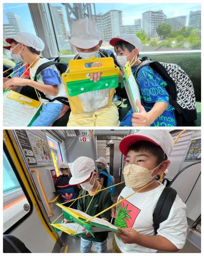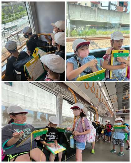 車内ではマナーを守りながらワークシートに各駅から見えたものなどをメモしました。