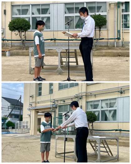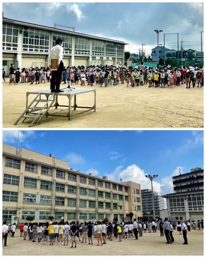 最初に校長先生から「夏休みにがんばること、チャレンジすること」や「平和について考える夏休みにしましょう」とお話がありました。
