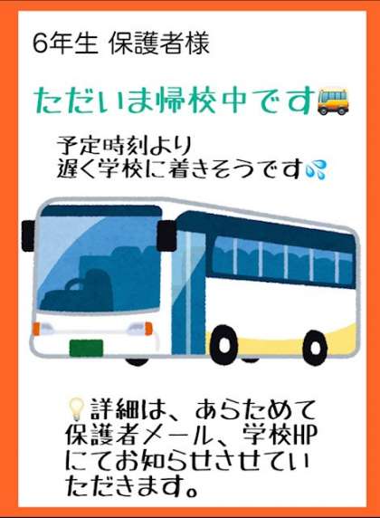 現在帰校中ですが、予定より時間がかかりそうです。