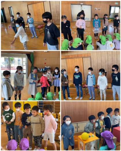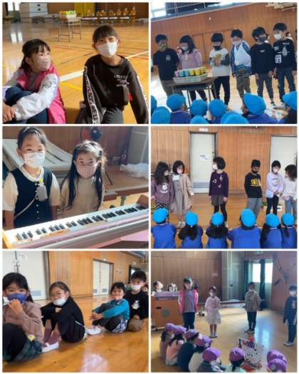 近隣の保育園、保育所、幼稚園の子どもたちを招待し、1年生と交流しました。