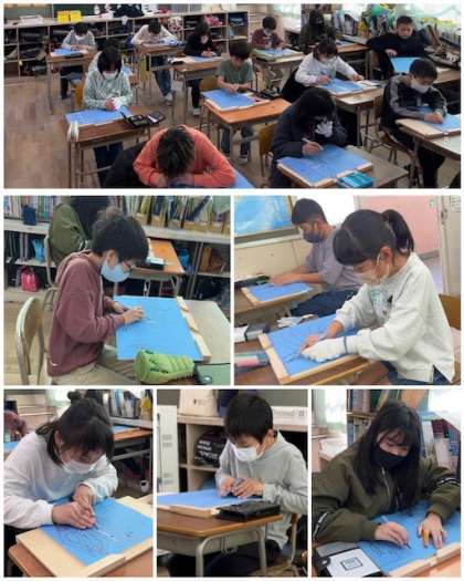 それぞれの彫刻刀の特徴や使い方を理解し、少しずつ彫りすすめていきました。