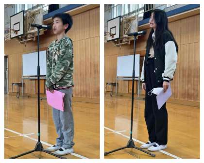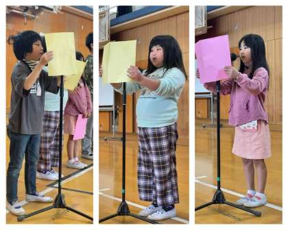 1年生・5年生の子どもたちが、1年間を振り返ってがんばったことや、できるようになったことを発表しました。