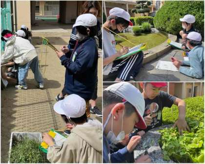 春の生き物を観察しました。学習園に行ったり、虫眼鏡を使ってじっくり見たりして観察しました。