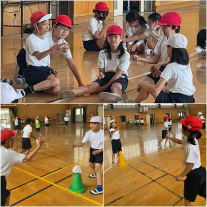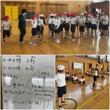 並び方や学習のルールを確認しました。楽しいゲームを交えて新しい仲間と声をかけあったり、協力したりしながら学習しました。