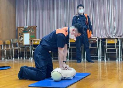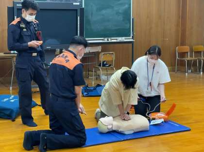 心肺蘇生法の実技講習会を行いました。大阪市消防局の方から、AEDの使い方や、胸部圧迫の方法について詳しく教えていただきました。安全に楽しくプール水泳の学習ができるように準備を進めています。