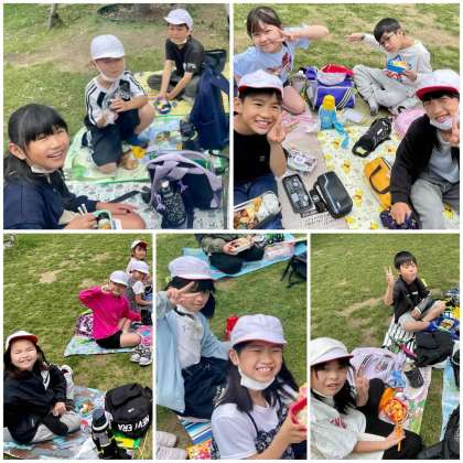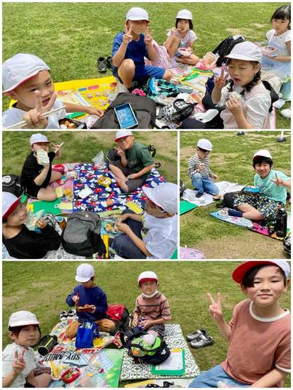 展望台では班行動です。東西南北の方角から何が見えるかな?ワークシートに見えたものを書きました。お弁当はてんしばへ移動して食べました。
