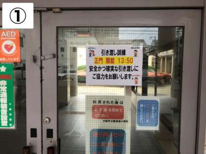 1.正門は13時50分に開門します。自転車等でのご来校はお控えください。