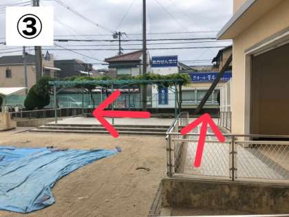 3.運動場へは、写真の通路を通って出るようにしてください。
