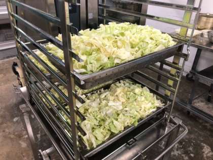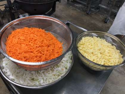 今日の材料は…写真を見てください。どんなメニューかな?子どもたちに聞いてみてください。それにしても量が多いですね。およそ440人分ですからね。