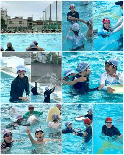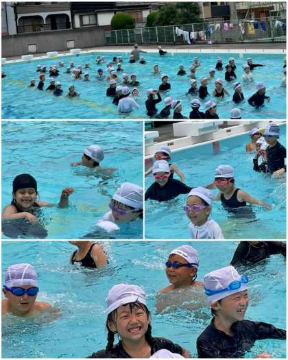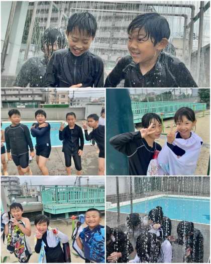 今日は4年生、1年生、6年生が入水しました。曇り空でしたが子どもたちは笑顔いっぱいで、プール水泳を楽しみました。