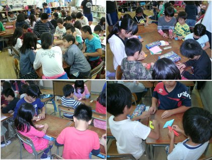 今日は6年生が1年生に折り鶴の作り方を教えに行きました。1年生は教えてもらいながら一生懸命鶴を折っていました。