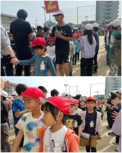 2年生から6年生のみんなに拍手をもらいながら、1年生は花道を通りました。