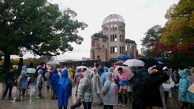 6年生が予定通り広島に到着しました。あいにく雨が降っているようですが平和記念公園のフィールドワークを行っています。