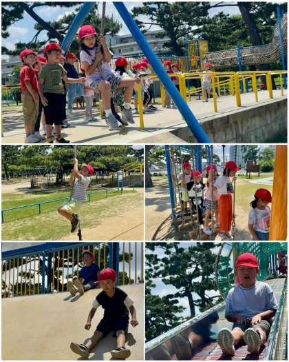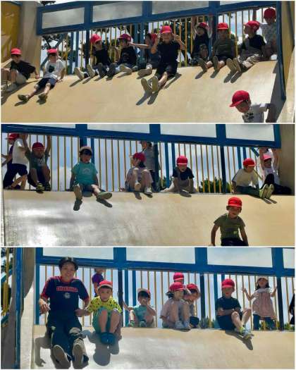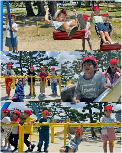 滑り台やロープのトンネル、ブランコで思い切り遊びました。