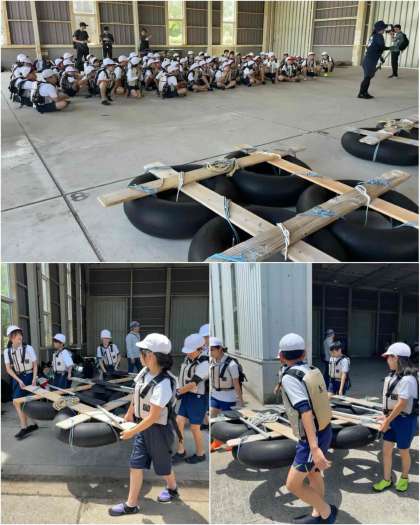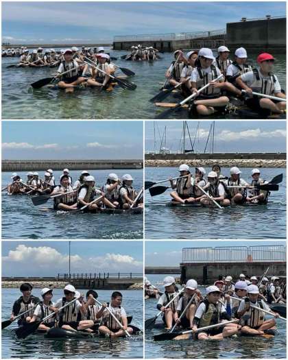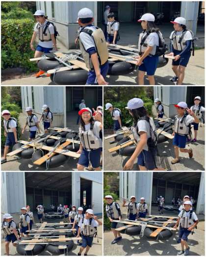 海の活動ひとつ目は、いかだ体験です。