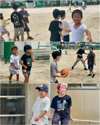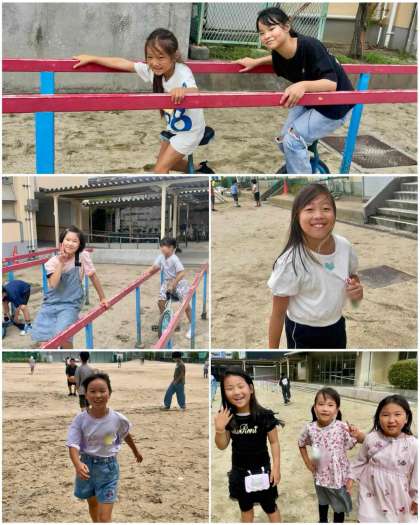 雨が上がると、運動場にはたくさんの子どもたちがやってきます。