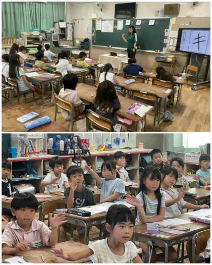 1年生は学校でたくさんの友だちに会えてとても嬉しそうです。