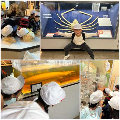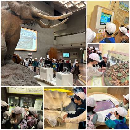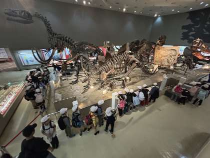 自然史博物館では、恐竜の骨や生き物の標本、自然の循環などに触れながら見学しました。