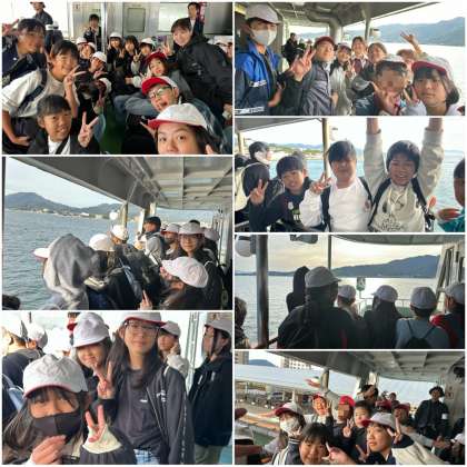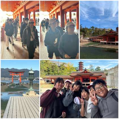 厳島神社の大鳥居を見て「おおー!」と歓声があがりました。