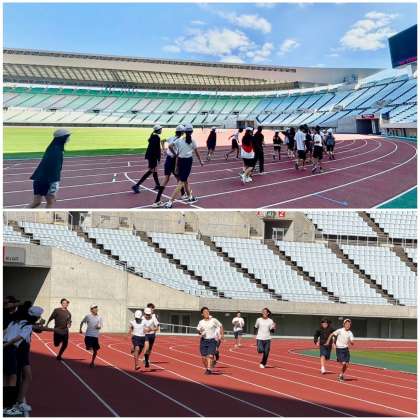 サッカーやマラソンなどの国際試合でも使用される会場の見学に、子どもたちも気分が上がっていました。