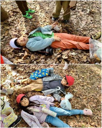 紅葉した落ち葉を見つけたり、どんぐりをひろったり。