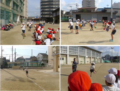 今日は少し暖かさを感じる日中でした。そんな中、2年生が元気に体育をしていました。5分間走やなわとびなどに取り組んでいました。