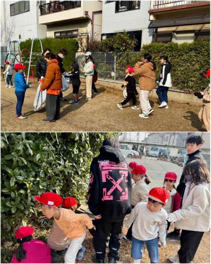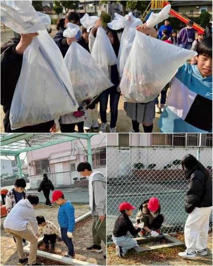 1年生と6年生がグループになって、校区の公園まで出かけ、掃除をしました。