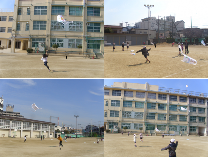 今日は1年生が生活科で作った凧を運動場であげました。からまったこともありましたが、みんな楽しそうに走り回っていました。