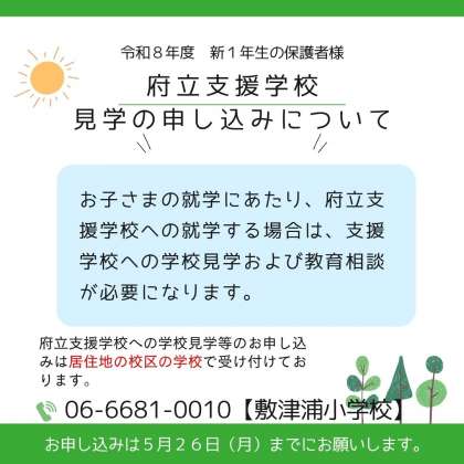 見学を希望される方は、敷津浦小学校までご連絡をお願いします。