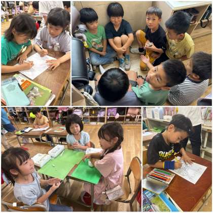 こんな日の休み時間は、図書館での読み聞かせを聞いたり教室で友だちとねんどやお絵かきをして過ごしたりしています。