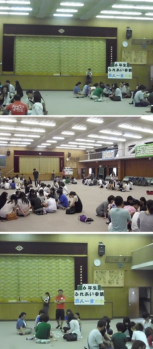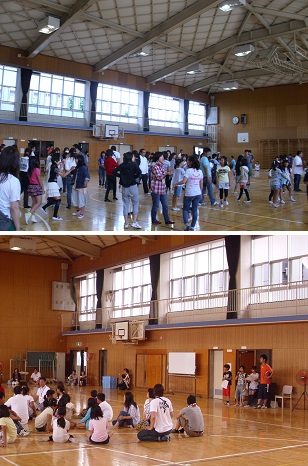 ○5年生は体育館で一泊移住でするレクリエーション活動