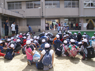 敷津浦小学校にて出校式を行いました。梅雨入りしたにも関わらず、とても良い天気の中、みんな元気に出発しました。