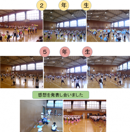 異学年集会では、運動会の団体演技を見せ合いました。