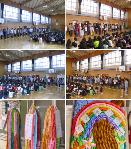 6年生は修学旅行に向けての「決意の言葉」や、みんなの協力を得て作った千羽鶴を発表しました。最後に「ヒロシマの有る国で」を手話しながら歌いました。