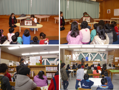今日の昼休み、図書室で地域の方が「本の読み聞かせ」をしてくださいました。
