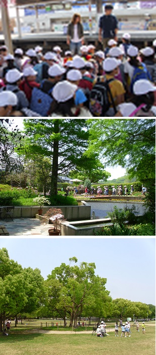 校外学習では大仙公園に行きました。とても天気がよくて暑いくらいでしたが、子どもたちは「おにごっこ」や、「だるまさんがころんだ」などをして元気に遊びました。