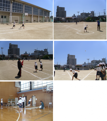 ソフトボールも重そうでしたが、力いっぱい投げていました。友だちを応援する様子も見られました。