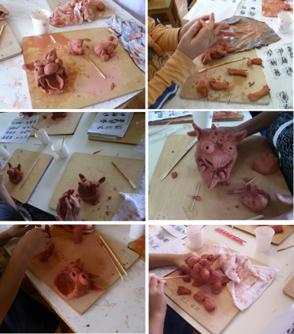 今日、5年生がシーサーを作りました。