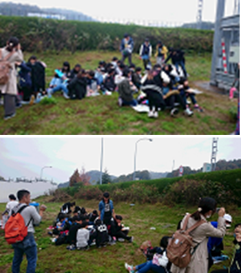 福山は雨はやんでいて、外でお弁当を食べました。