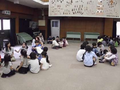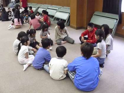 今日は全学年が5月24日(土)の子ども文化祭で一緒に活動する違う学年ののグループのメンバーと交流しました。