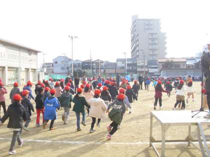今日の子ども集会は「ケイドロ」でした。オニにタッチされたらつかまってしまいますが、味方にタッチされるとまた逃げることができるというルールです。
