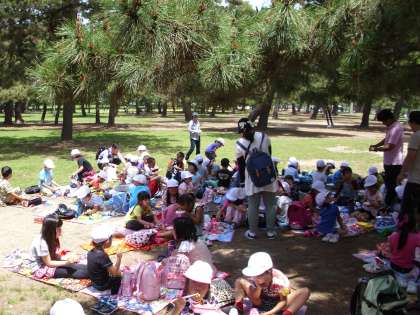 今日は1年生が校外学習で浜寺公園にいきました。