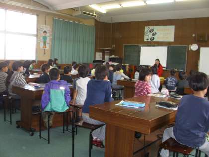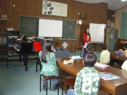 3年生から6年生までは、音楽室で勉強をします。3年生が初めての音楽室を使っての勉強をしていました。音楽室のルールや、楽器についての説明がありました。