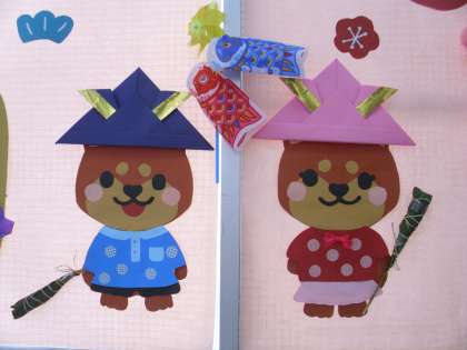 今日から5月になりました。今日は、こどもの日の行事献立で、牛肉のちらしずし・すまし汁・ちまきが出ました。給食調理員さんたちが給食室の掲示をこどもの日バージョンに模様替えをしてくれていました。
