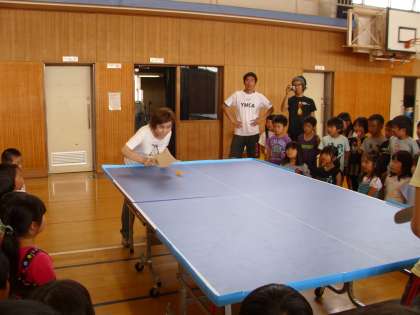 子どもたちは点字をうつ速さや卓球のスマッシュのするどさに驚きの声をあげていました。
