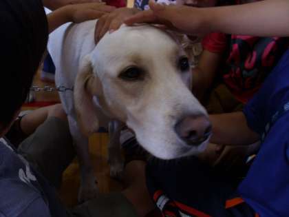 今日は山本さんと盲導犬のフェリシアが学校に来て2年生にお話しをしてくださいました。