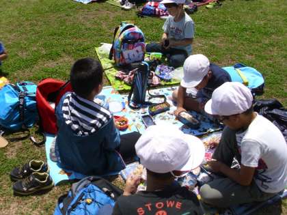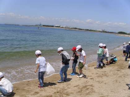 雨で延期になっていた2年生の遠足が今日ありました。とてもいい天気で、こどもたちは大型遊具で元気いっぱい遊びました。お弁当の後、浜に出て、海辺の観察をしました。海草や貝殻などたくさん見つけることができました。