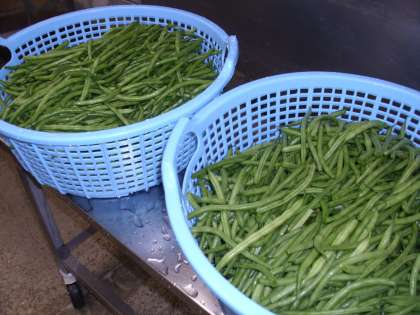 今日は子どもが楽しみにしているカレーの日でした。牛肉と大豆のほかに、ジャガイモ、ニンジンなど具材たっぷりでした。敷津浦のカレーにはハート型の人参がいつも入っています。今日はみつけることができたかな。サラダで使う三度豆は全部で何と10キロも使ったそうです。一つずつへたを給食調理員さんがていねいにとってくれたそうです。調理員さん、ごちそうさまでした。