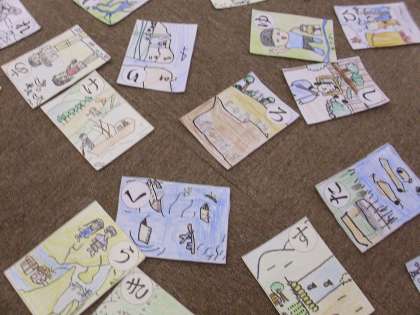 子どもたちが手作りでつくったかるたをつかってみんなで楽しみました。